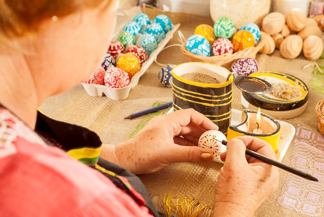 A técnica é simples, mas requer muita habilidade. No ovo de galinha cozido são feitos desenhos com cera de abelha derretida, com a ajuda de um alfinete de costura preso num lápis, mas colocado no lado oposto ao da ponta. A cera é derretida numa colher dobrada e aquecida embaixo por uma vela. Feitos os desenhos, cada ovo é mergulhado em água tingida. A superfície da casca que não foi coberto pela cera será tingida e a parte coberta com cera ficará com a cor natural do ovo.